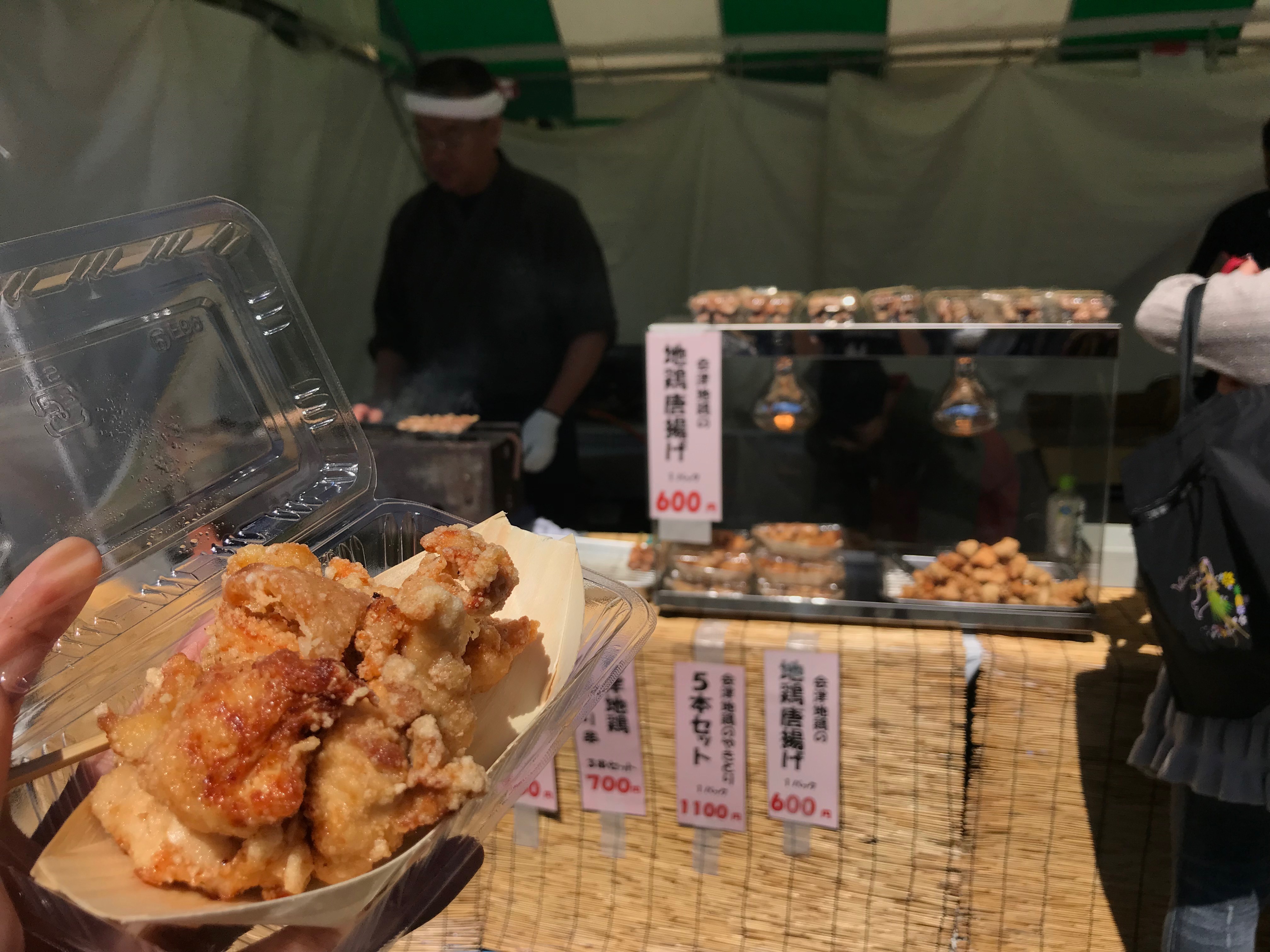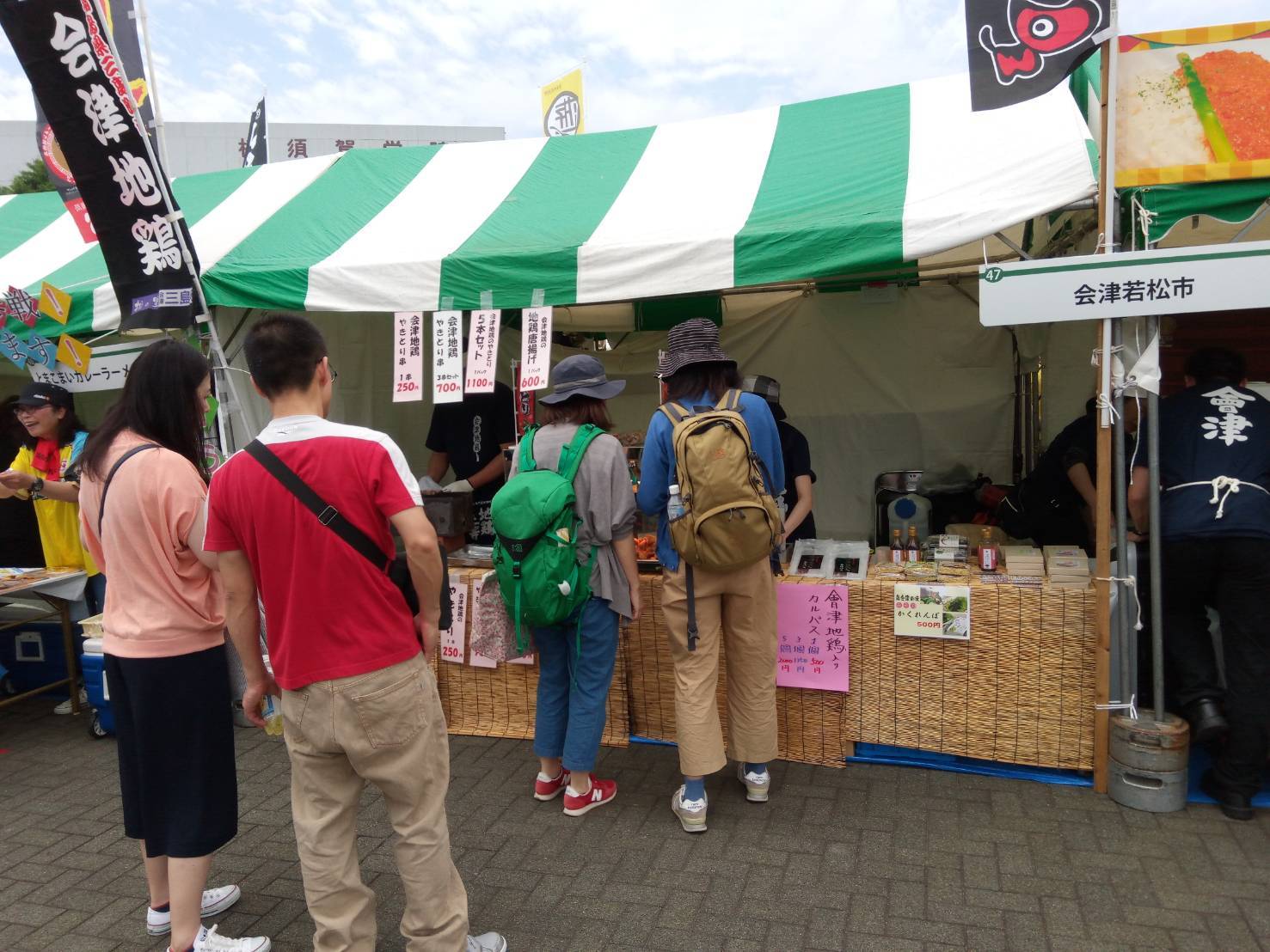 会津若松市ブースにて、三島町産会津地鶏のからあげ/やきとりを販売、
